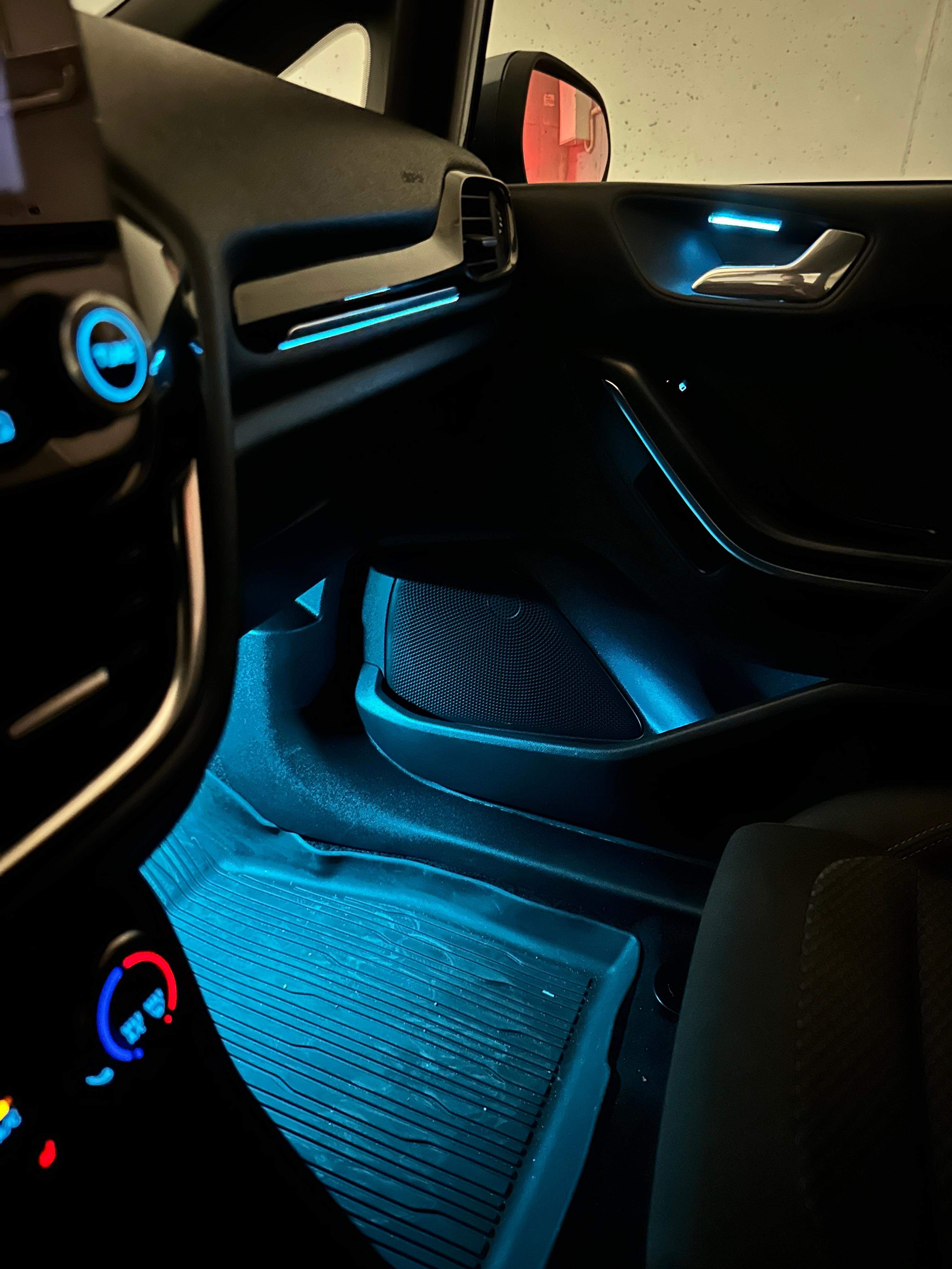 Upgrade your car with our easy-to-install ambient light set, extending the luxury feel to the rear footwell and door areas. Our sets are guaranteed to fit your car perfectly and ensure seamless integration with your vehicle's existing functions. The user-friendly plug-and-play design makes the installation process uncomplicated and requires no drilling or soldering. Our instructions provide a step-by-step guide to ensure a seamless and hassle-free installation. Upgrade your vehicle's interior and experience a new level of style and luxury during your driving journey.