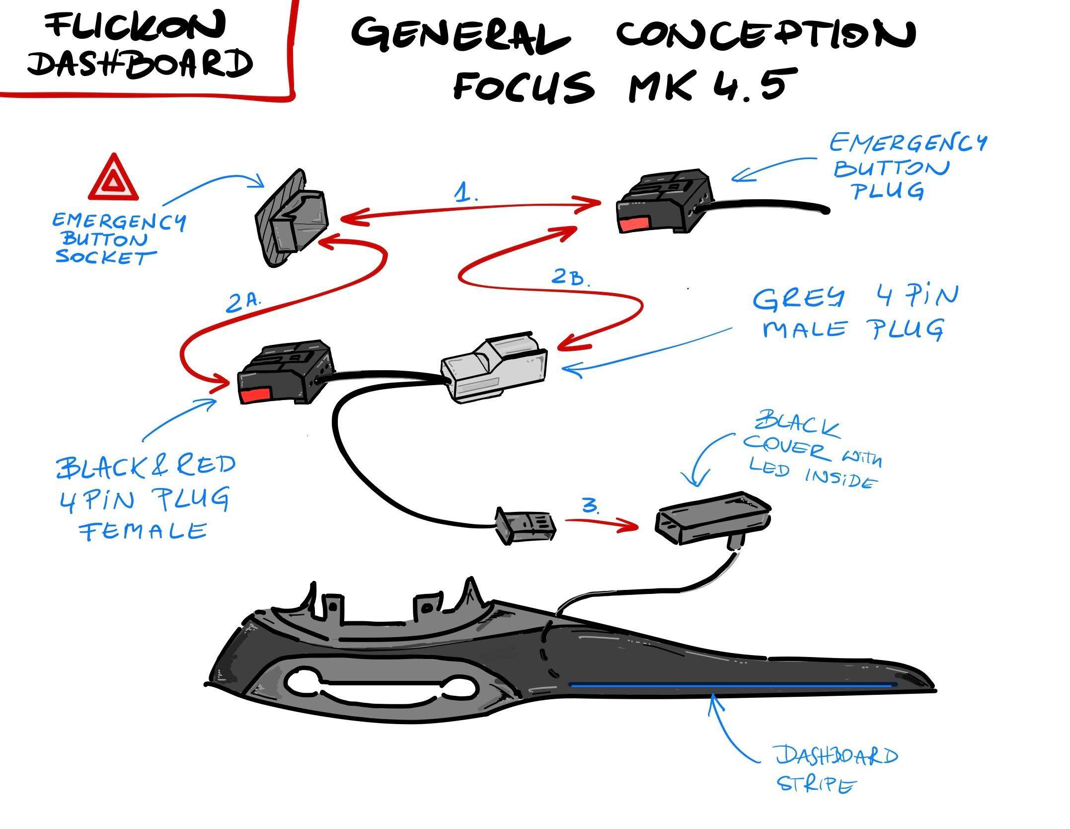 We tested several possibilities and found a solution of splitting the power source and achieving the same end result by taking power for dashboard from the emergency button illumination. This solutions cover such issue in all model of mk4 and mk4.5 with single-color (ice-blue shade). Thus we deiceded to change the wirning concept in dashboard LED stripe sets, besided mulitcolor, which stay as extended from front footwell.