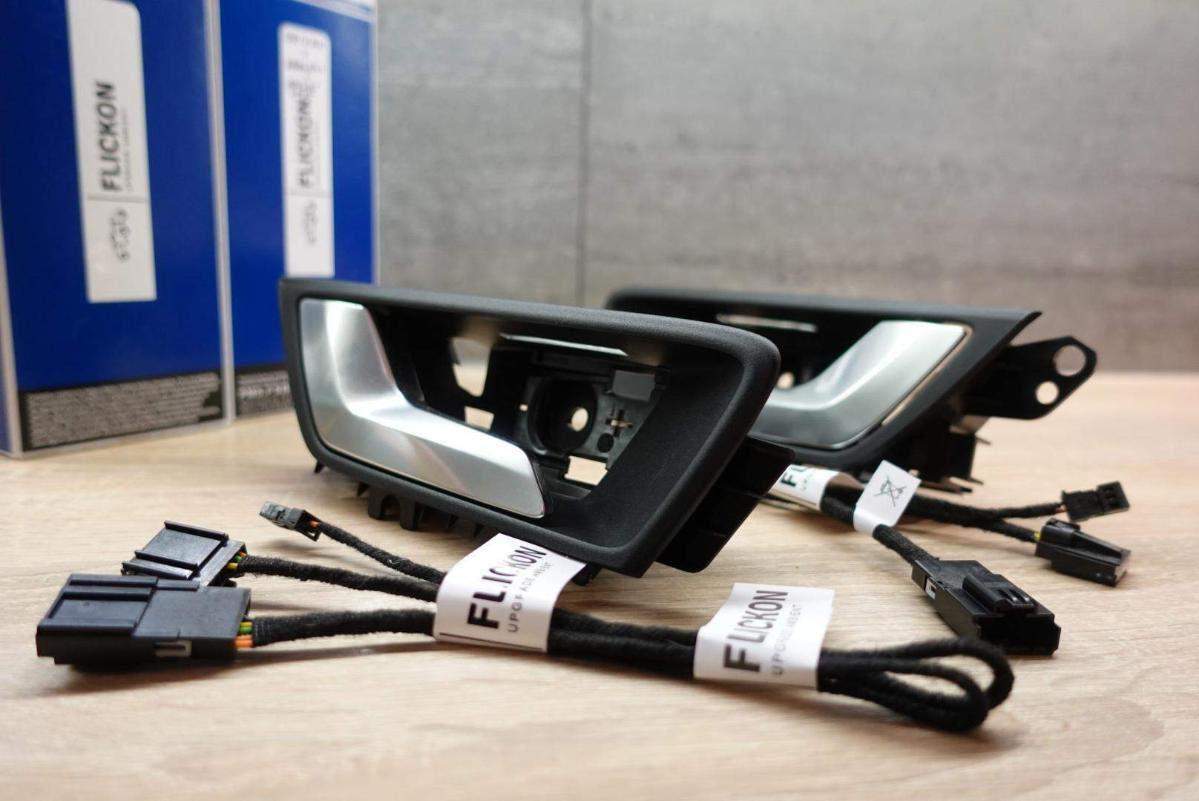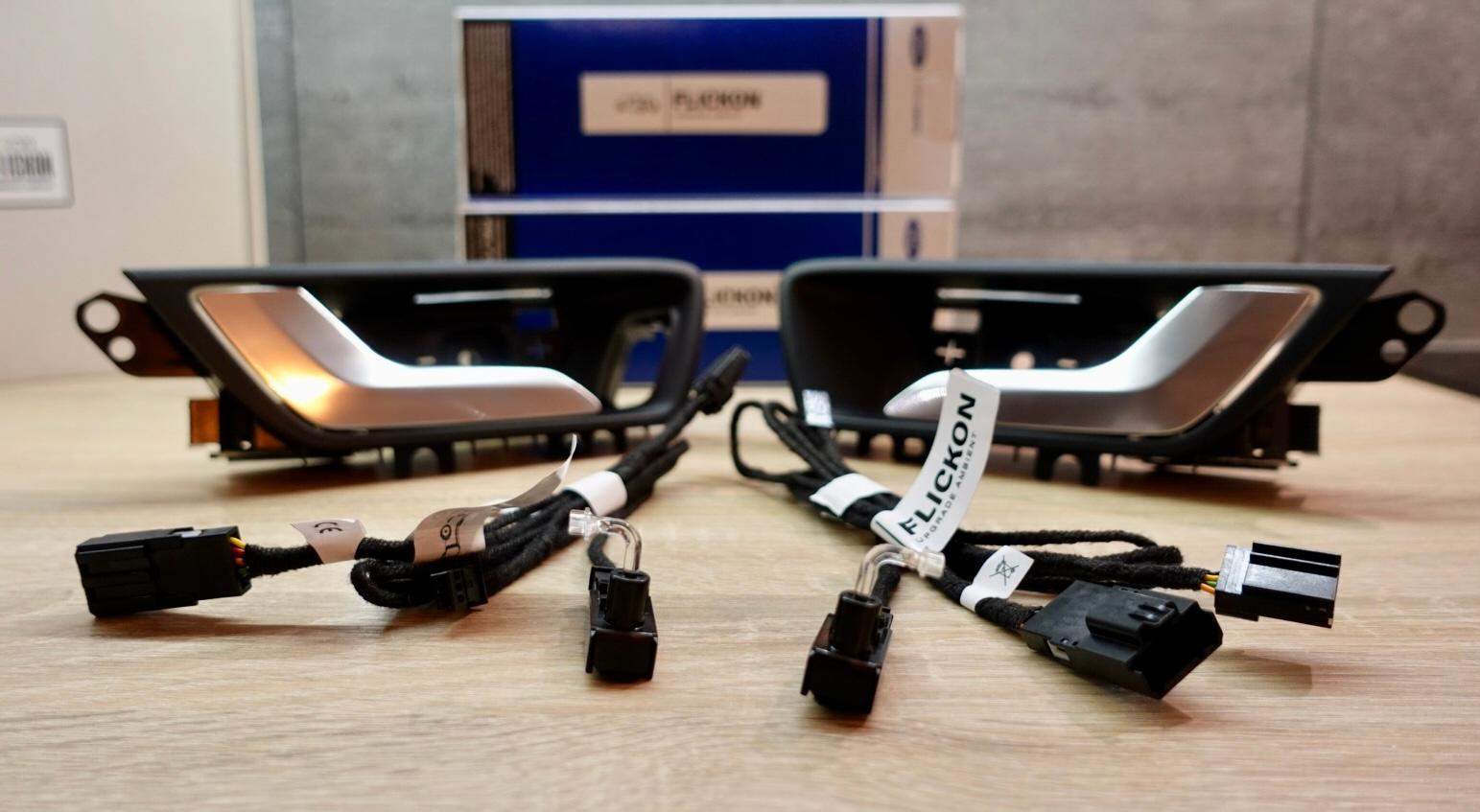 This specially crafted set is catered to enhance the driving experience in the front area. This set includes original lamps for illuminating the door pockets, and handles replaced by original door handles with ambient lights elements. The crafted wiring harnesses allow for an easy and non-invasive assembly both LHD and RHD vehicles.