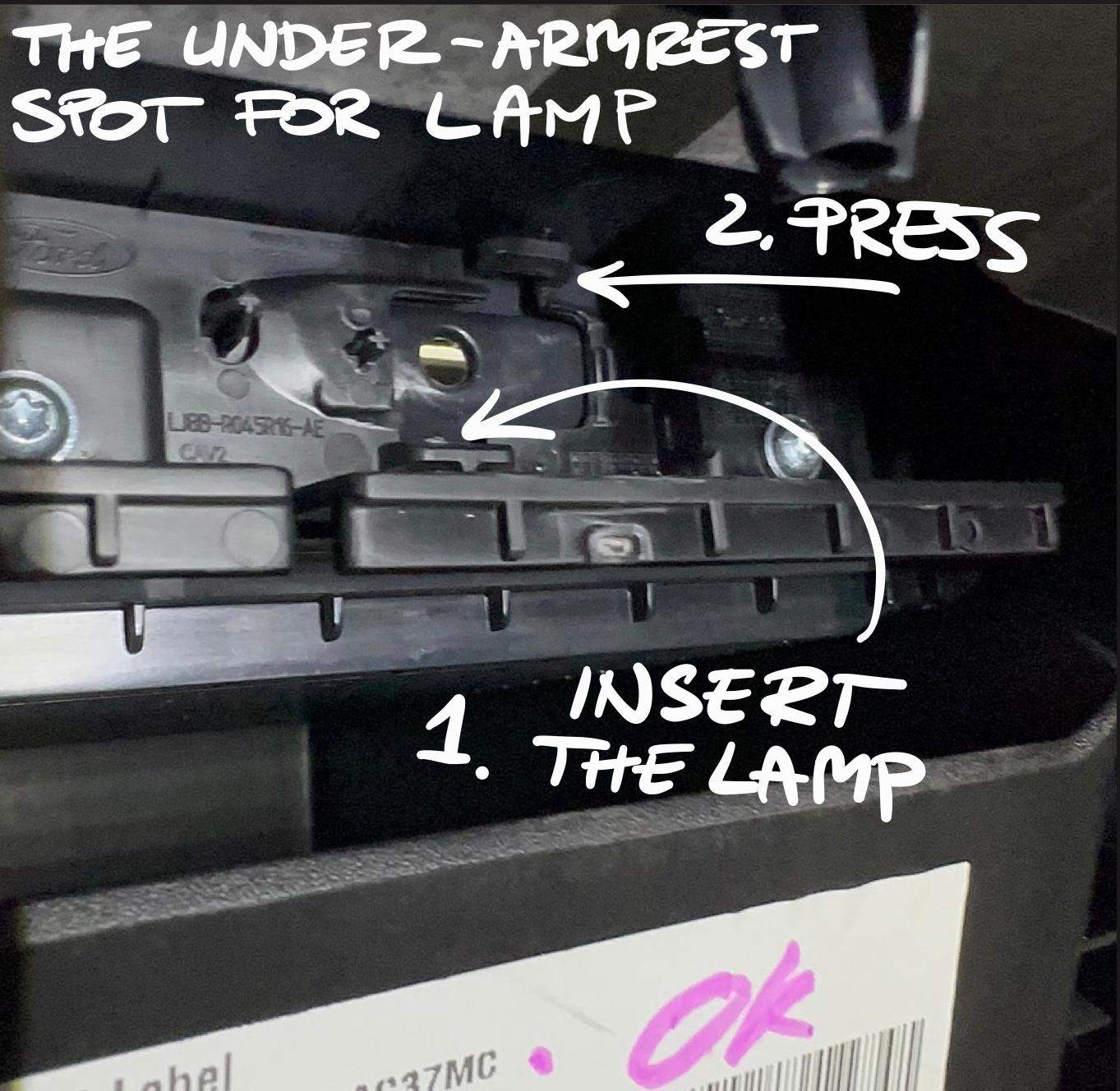 What you need is get access inside the central tunnel by removing the cover in the middle of central tunnel (from the front & rear side), and next install the lamp in the dedicated spot.