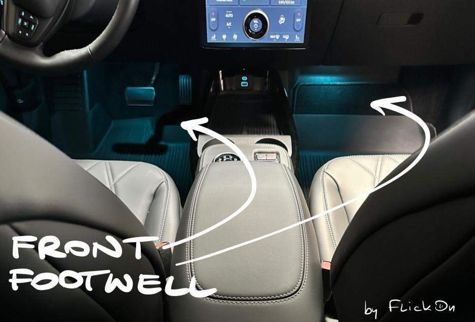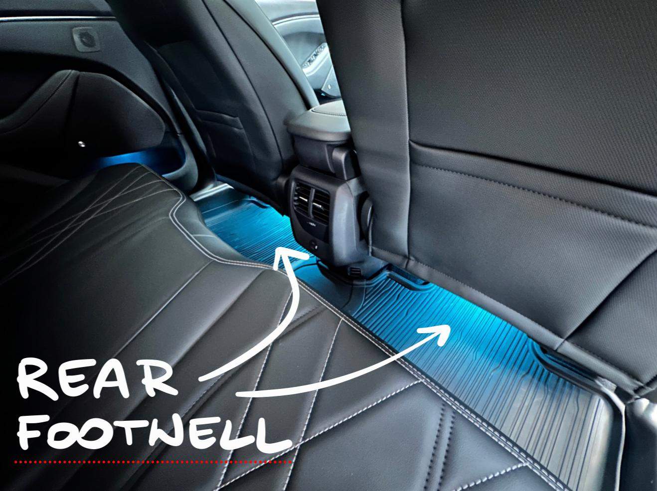 Generally, the all Mach-E with rear wheel drive (RWD) option, doesn't provide any ambient lighting. So, we have decided to fill that gap by offering ice blue sets in footwells, doors, and central tunnel areas. All were designed for plug-and-play, hassle-free installation. Check our proposition for footwell ambient lights.