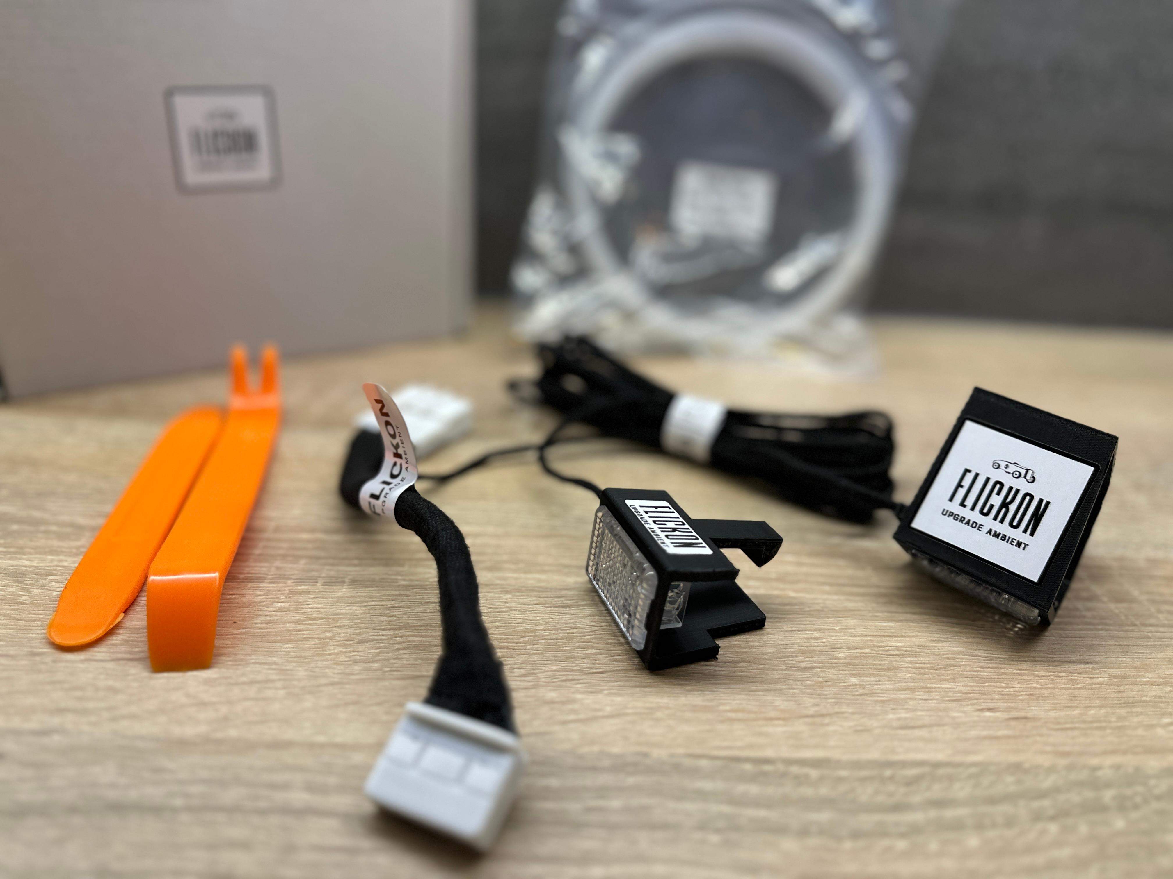 This set was designed as plug&play installation powered from roof console. Added lamps can be steered with +/- brightness.